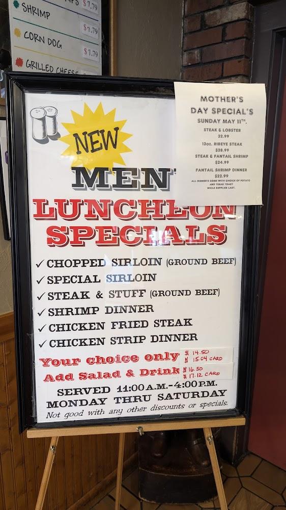 Luncheon specials offer affordable, satisfying choices like chopped sirloin and hot steak salads, making it easy to grab a bite on the go.